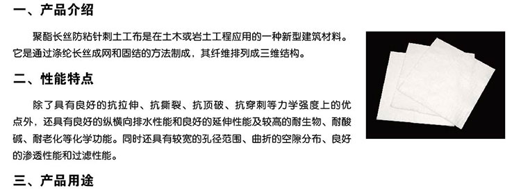 長絲土工布(hatching eclosion)長絲土工布的國家標(biāo)準(zhǔn)GB/T 17639-1998土工合成材料長絲防粘針刺非織造土工布,標(biāo)準(zhǔn)GB/T 17639—2008。